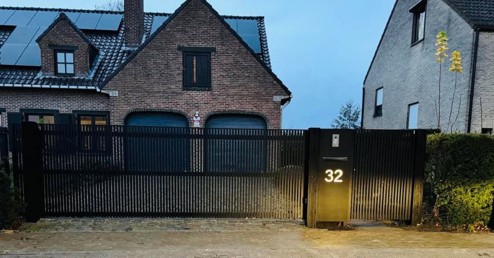La réalisation technique de ce projet a nécessité une coordination parfaite. L'alimentation électrique du totem technique, la gestion des câbles pour le vidéophone et l'éclairage, ainsi que la maçonnerie pour le seuil du portail coulissant, tout a été planifié pour qu'aucun fil ne soit apparent. La structure en aluminium de l'ensemble garantit une longévité exceptionnelle face au climat belge humide, sans risque de corrosion. L'uniformité des teintes et des matériaux entre le portail, le portillon et le totem crée une harmonie visuelle apaisante, loin du chaos visuel des entrées encombrées.