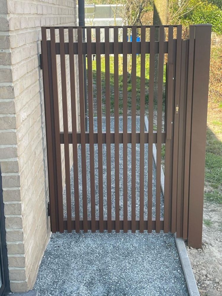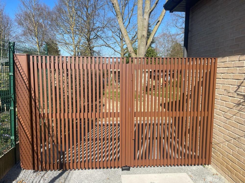 Portail et Portillon modèle Ganit, RAL « Mars Rouille Sablé » : une réalisation qui allie caractère, solidité et élégance. Chez TORI Portails, spécialiste de l’installation de portails sur mesure à HALLE, chaque projet est conçu pour répondre à des besoins précis tout en apportant une véritable plus-value esthétique à votre propriété. Le modèle Ganit illustre parfaitement cette philosophie. Avec ses lignes épurées et son coloris unique RAL Mars Rouille Sablé, il attire l’œil sans en faire trop, affirmant une identité forte, parfaitement intégrée à l’environnement.