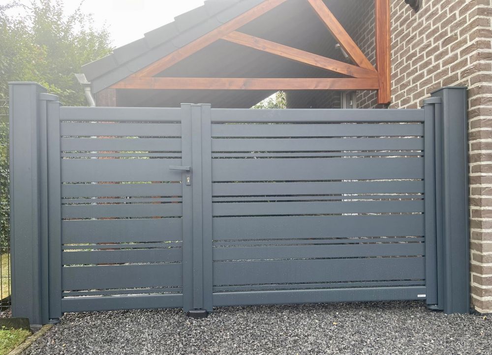 En région de Gravenbrakel, le climat est parfois pluvieux et venteux. Le choix d’un portail en aluminium thermolaqué est donc particulièrement pertinent. La finition RAL 7016 résiste aux UV et ne se décolore pas avec le temps. L’aluminium ne gonfle pas et ne se déforme pas sous l’effet de l’humidité. De plus, ce matériau est entièrement recyclable, ce qui répond aux préoccupations environnementales actuelles. En optant pour un portail double battant en aluminium sur mesure, vous réalisez un investissement durable qui valorise votre patrimoine.